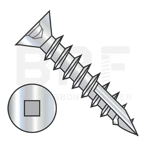 › Screws › Cabinet Screws › flat with 17 point cabinet screws › square recess no nibs stl zinc full thread flat with 17 point cabinet screws › 6-13X1/2 #2 Square Drive Flat Head No Nibs Deep Thread Type 17 Full Thread Zinc Bake