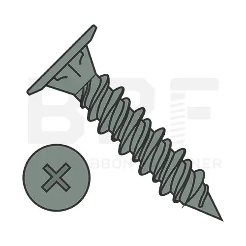 › Screws › Deck and Drywall Screws › wafer phillips high low sharp pt Drywall Screws › 8-15X1 1/4 Phillips Wafer with Nibs High Low Screw Full Thread Sharp Point Ceramic Green