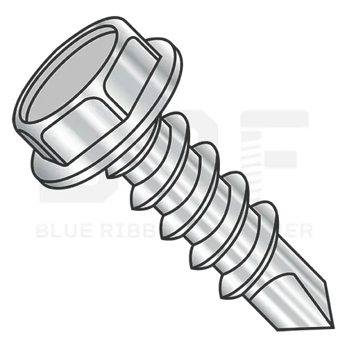 › Screws › Self-Drilling Screws › hex washer self drilling screws › unslotted hex washer self drilling screws › 410 stainless 2 3 pt unslotted hex washer self drilling screws › 1/4-14X3/4 Unslotted Indented Hex Washer Full Thread Self Drill Screw 410 Stainless Steel