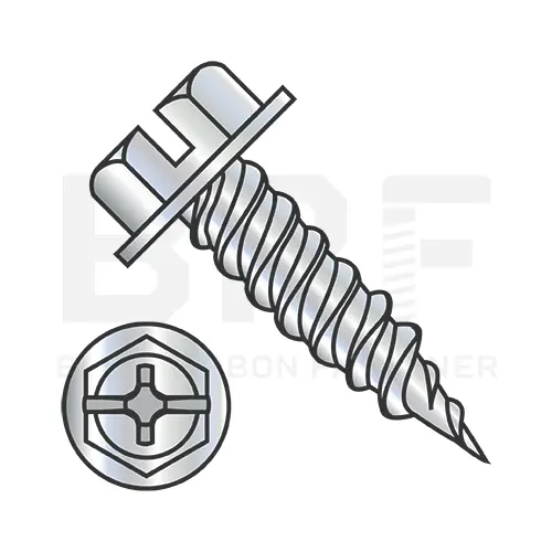 › Screws › Self-Piercing › hex washer self piercing screws › combo steel zinc 1 4 a f hex washer self piercing screws › 10-16X3/4 Combo (slot/phil) Ind Hexwasher 1/4" Across Flats F/T Self Piercing Screw Zinc