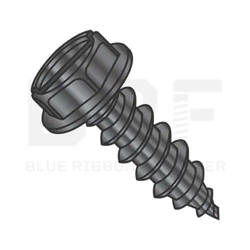 › Screws › Self-Tapping Screws › type ab self tapping screws › hex washer type ab self tapping screws › slotted hex washer type ab self tapping screws › steel black oxide slotted hex washer type ab self tapping screws › 8-18X1/2 Slotted Indented Hex Washer Self Tapping Screw Type AB Fully Threaded Black Oxi