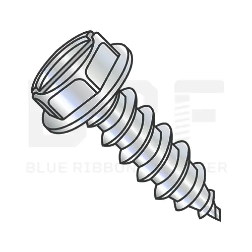 › Screws › Self-Tapping Screws › type ab self tapping screws › hex washer type ab self tapping screws › slotted hex washer type ab self tapping screws › steel zinc slotted hex washer type ab self tapping screws › 4-24X5/16 Slotted Indented Hex Washer Self Tapping Screw Type AB Fully Threaded Zinc Bake